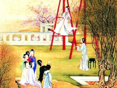 “梨花风起正清明,游子寻春半出城。 日暮笙歌收拾去,万株杨柳属流莺。” 宋代吴惟信所作的《苏堤清明即事》诗,惟妙惟肖地描绘了清明踏青的盛景。 可以看出,古人已经把祭祀、游乐结合起来,因为祭祖要到郊外,所以祭祖之余又可以踏青,而且往往把这种踏青作为清明节的重头戏,使得肃穆恭敬的清明节增加了回归自然、享受人生的世俗内涵。此外,古典小说中的不少爱情故事,男女主角便是在清明踏春时一见钟情的,白娘子和许仙就是活生生的例子。 清明习俗五:荡秋千